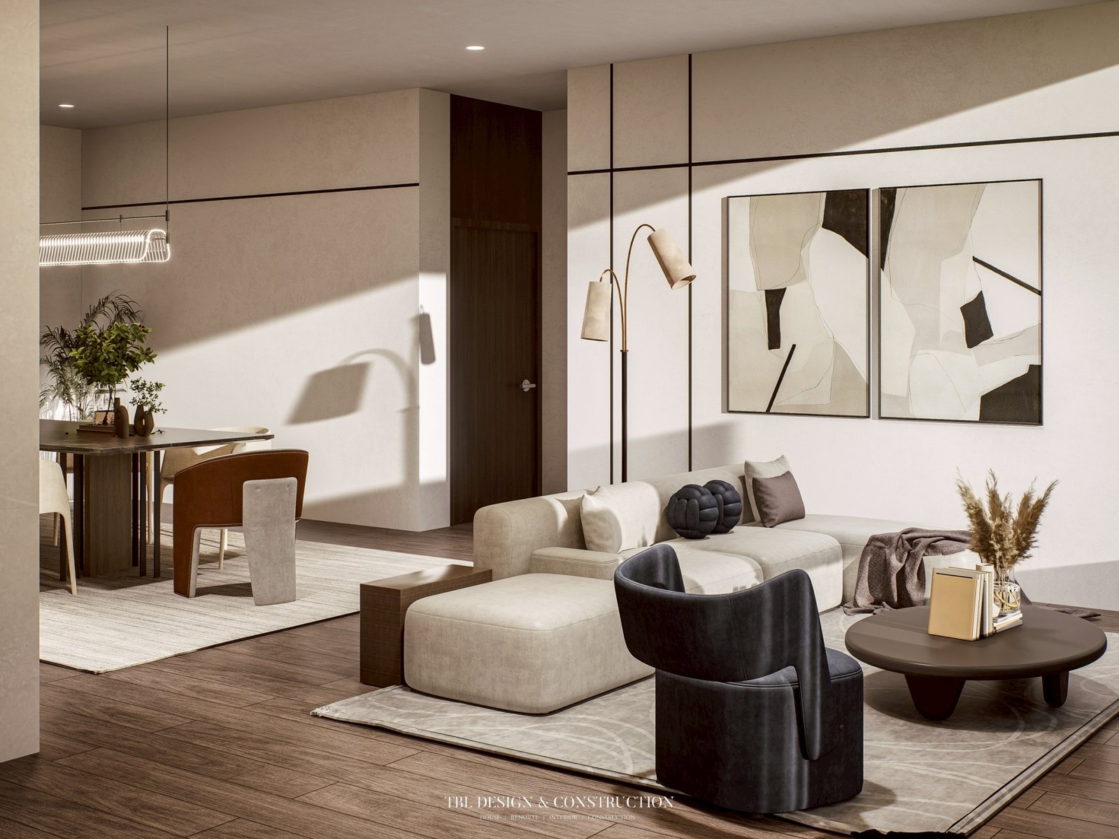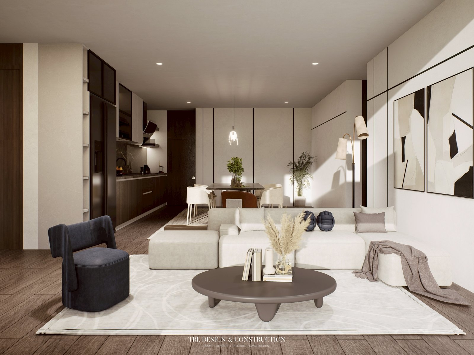 น้อยแต่มาก…หรูหราแบบเรียบง่าย นี่คือผลงานการออกแบบภายในสไตล์ โมเดิร์น จาก TBL Design ที่สะท้อนความเรียบหรูในแบบที่ไม่ต้องมีการตกแต่งมากมายแต่ยังคงความทรงพลังในทุกองค์ประกอบ การออกแบบภายในบ้านหลังนี้เริ่มต้นจากโจทย์ที่ฟังดูเรียบง่ายแต่แฝงด้วยความท้าทาย เนื่องจากโจทย์ที่ลูกค้าให้มาคือ “อยากได้ความโมเดิร์นที่ไม่ซับซ้อน เรียบนิ่ง แต่ต้องดูแพงและมีรสนิยม” เราในฐานะ TBL Design ซึ่งเป็นบริษัทรับสร้างบ้านหาดใหญ่ รับโจทย์นี้ด้วยความตั้งใจในทุกรายละเอียด โดยเน้นการออกแบบที่สื่อสารผ่าน เส้นสายที่สะอาดตา, สีที่สบาย, และ วัสดุที่ส่งเสริมความหรูหรา แบบไม่ต้องอธิบายเยอะ 𖡗 โทนสี: นิ่ง เรียบ แต่ทรงพลัง การเลือกใช้ โทนสีขาว, เทา, และ น้ำตาลธรรมชาติ เป็นหลัก เพื่อให้บ้านดู โล่ง, โปร่ง, และ สะอาดตา พร้อมเสริมด้วยสี ดำด้าน และ ทองแชมเปญ ในบางจุด เพื่อสร้างจุดนำสายตาและเพิ่มความหรูอย่างมีชั้นเชิง 𖡗 วัสดุ: คัดสรรให้ “น้อยแต่คุณภาพ”
