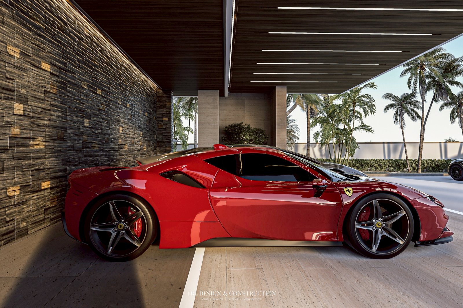พื้นที่ลาดจอดรถถูกคำนวณองศาอย่างละเอียด เพื่อให้สามารถรองรับรถซูเปอร์คาร์ที่มีความสูงต่ำเป็นพิเศษได้โดยไม่ติดพื้น